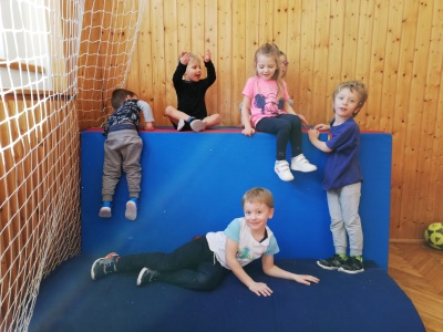 In the gym we run a lot and played with balls. We enjoyed the stop-dance a lot.