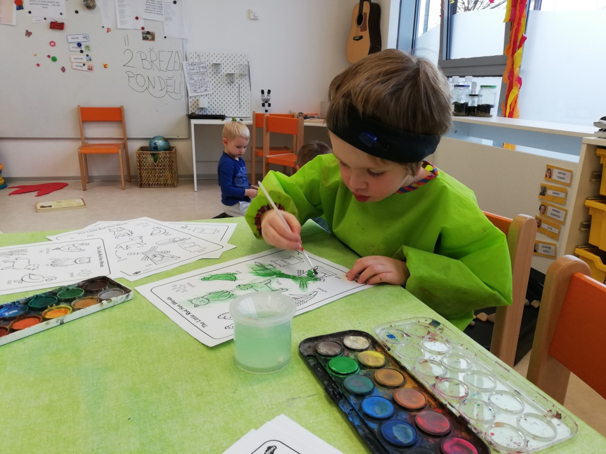 We repeated our „Little red hen“ story and learned the names of animals in czech and german.