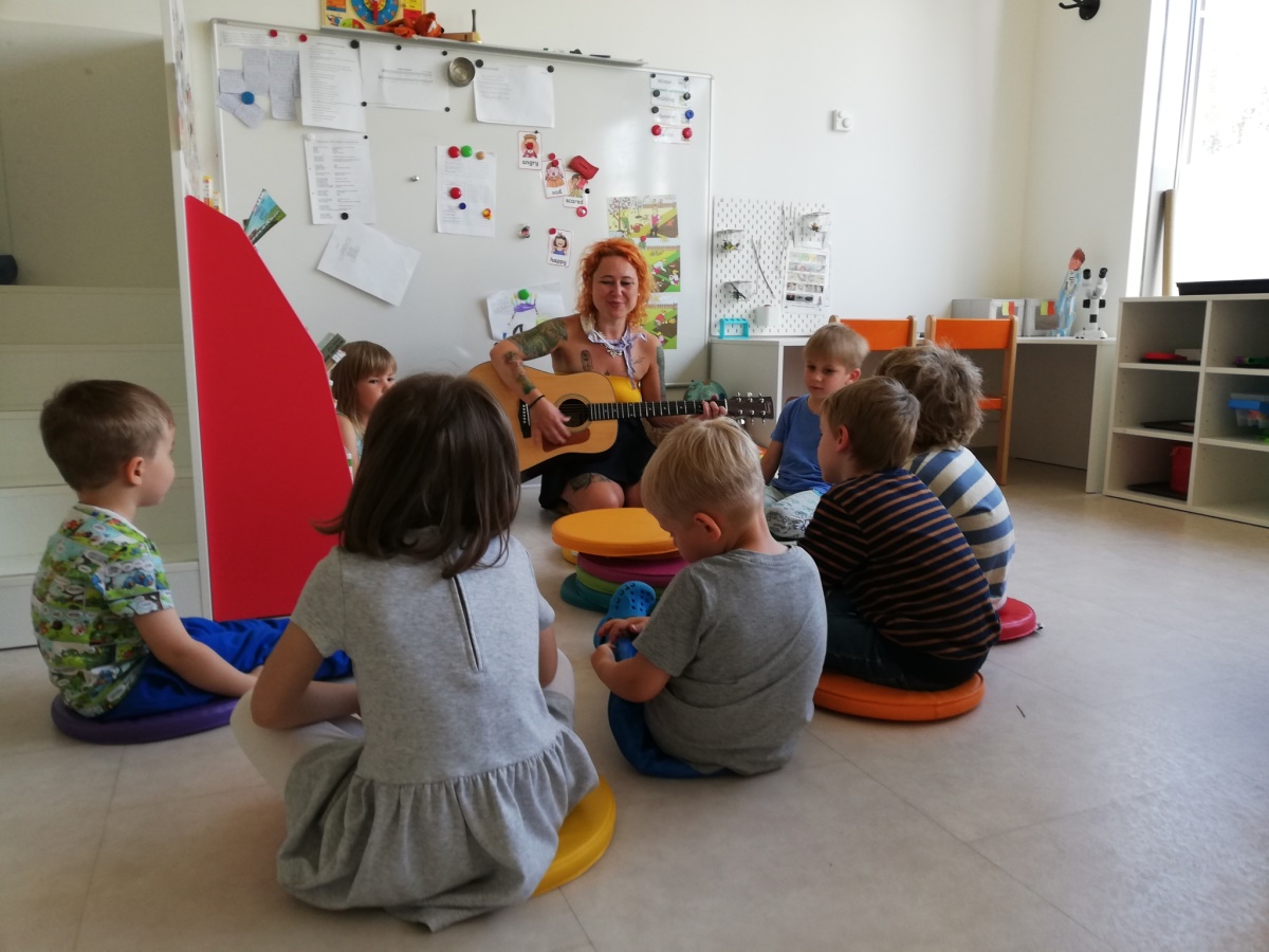 Wem made a different other sports activities – how the bugs are walking, how to massage our body parts or jump on collours.