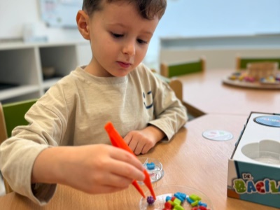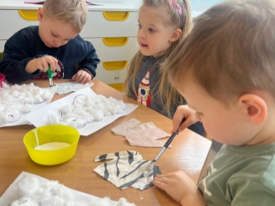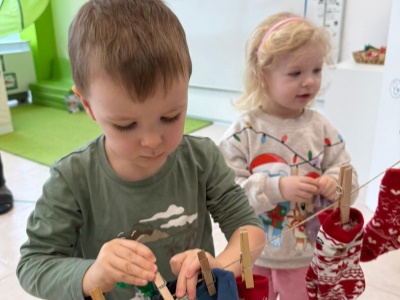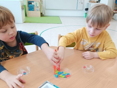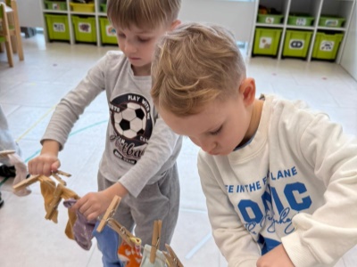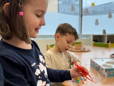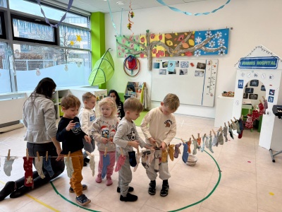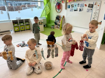 This week we helped Sneezy the Snowman figure out how to dress for the winter. We helped his mum with the washing and even paired all the socks together and hung them to dry. We put clothes on our Snowmen made of cotton, used tweezers to separate the bacteria according to colour and even looked for patterns on clothes. We focused on rhthym and coordination during our circle times, exercised and tried some new poses and read a whole lot of books about winter.